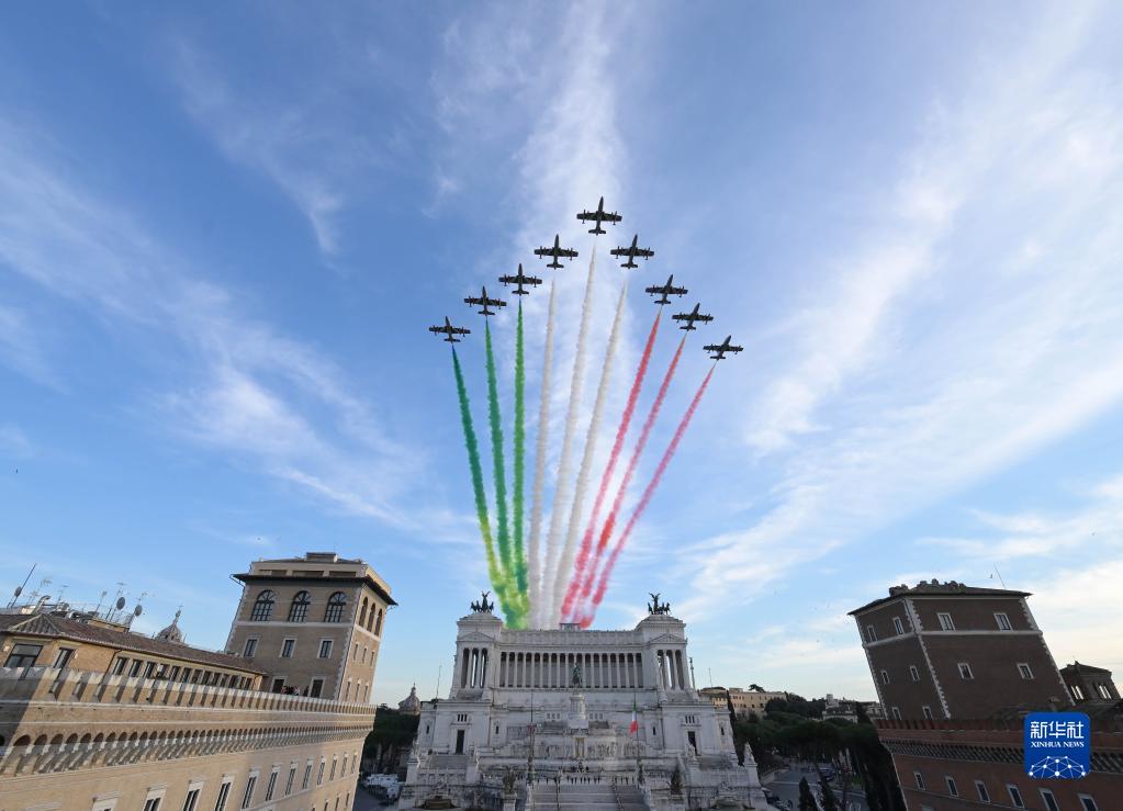 2月3日,意大利“三色箭”飛行表演隊噴出象征國旗三色的煙霧飛過(guò)羅馬上空,慶祝意大利總統馬塔雷拉就職。
