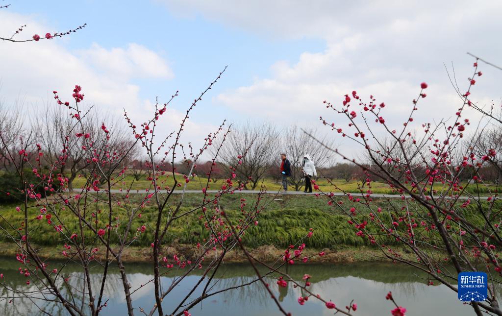 2月4日,游人在上海金山區花開(kāi)海上生態(tài)園內游玩。