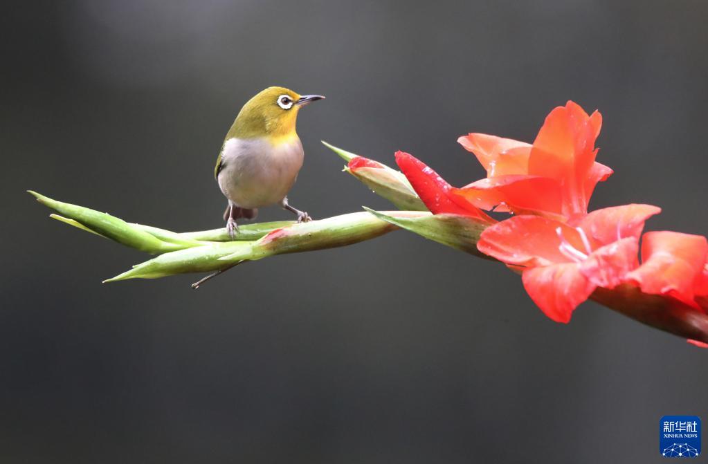 當日是二十四節氣中的立春,花兒開(kāi)放,生機勃勃,引來(lái)小鳥(niǎo)“鬧春戲花”。