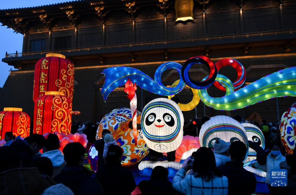 2月15日,市民在西安大明宮國家遺址公園參觀(guān)冬奧會(huì )主題彩燈。