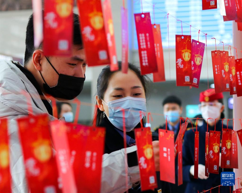 2月15日,旅客在重慶北站參與猜燈謎活動(dòng)。