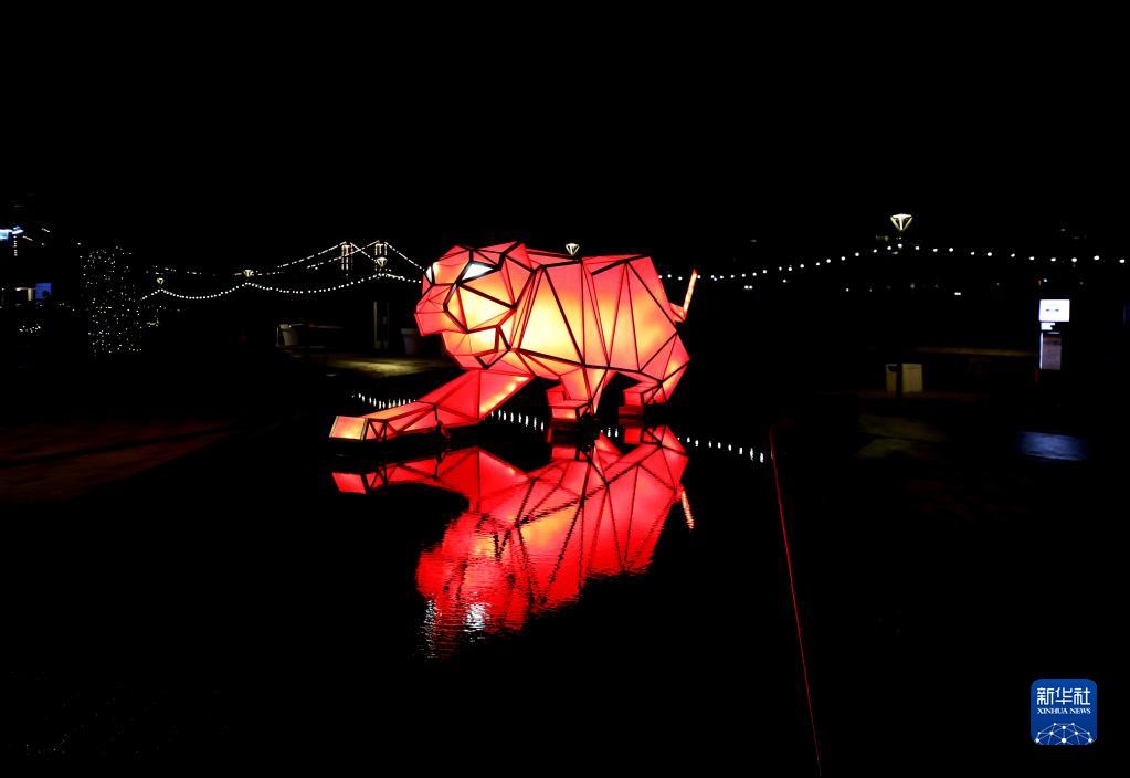 2月17日,在英國倫敦,慶祝中國虎年的燈光藝術(shù)裝置在巴特西發(fā)電站燈光節上展出。
