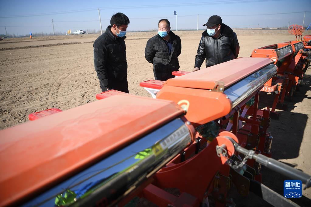 2月24日,農戶(hù)在春播生產(chǎn)現場(chǎng)會(huì )上了解農機情況。