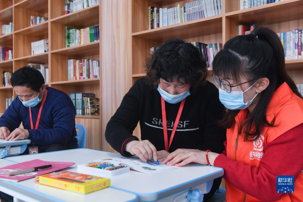 2月23日,在湖州市織里鎮晟舍村殘疾人之家,來(lái)自周邊的殘疾人(包括精神殘疾、智力殘疾和肢體殘疾)在志愿者輔導下練習繪畫(huà)和寫(xiě)字。