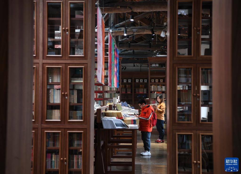 2月26日,游客在重慶山城巷一間用學(xué)校舊址改造成的圖書(shū)館內閱讀。