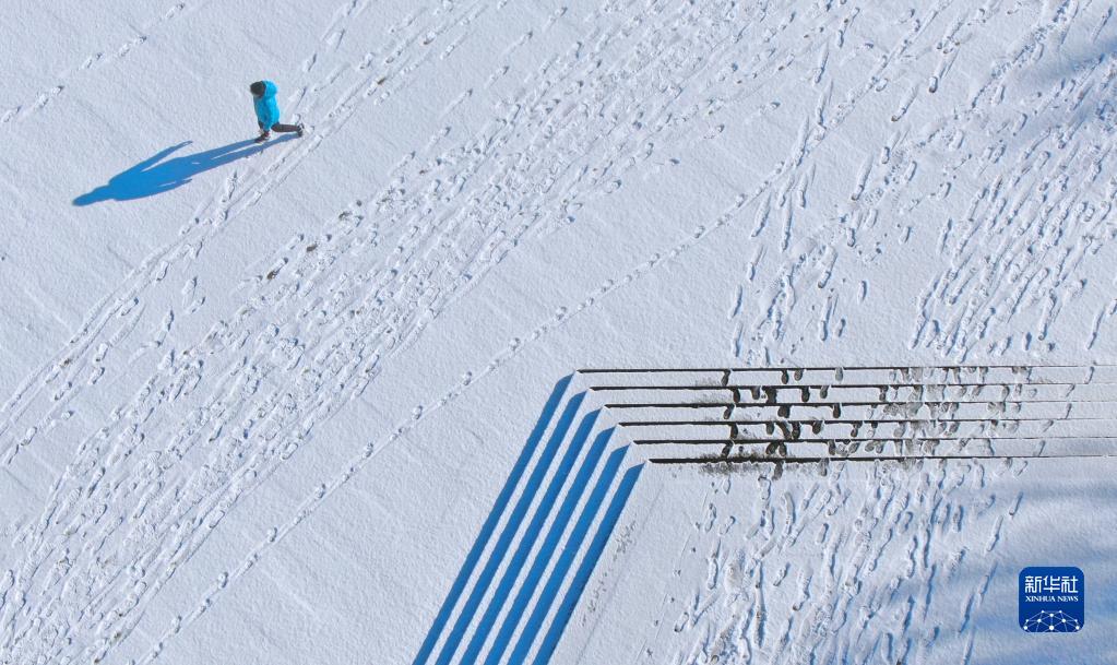 3月1日,市民在沈陽(yáng)市渾河岸邊散步(無(wú)人機照片)。