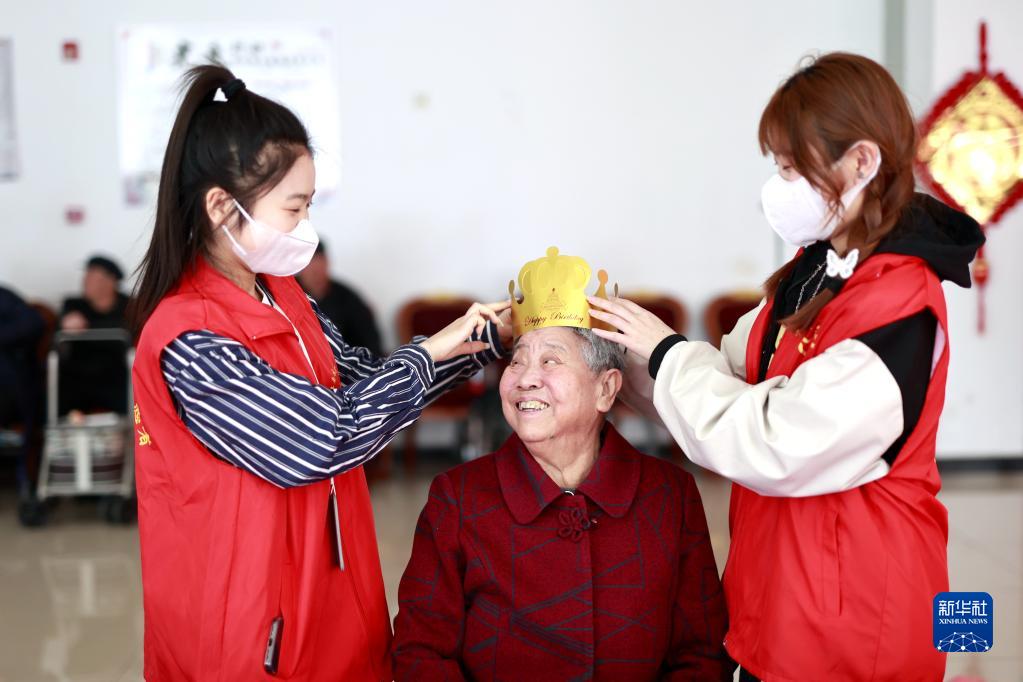 3月3日,河北省唐山市豐南區青年志愿者為豐南區??叼B護中心的老人過(guò)集體生日。