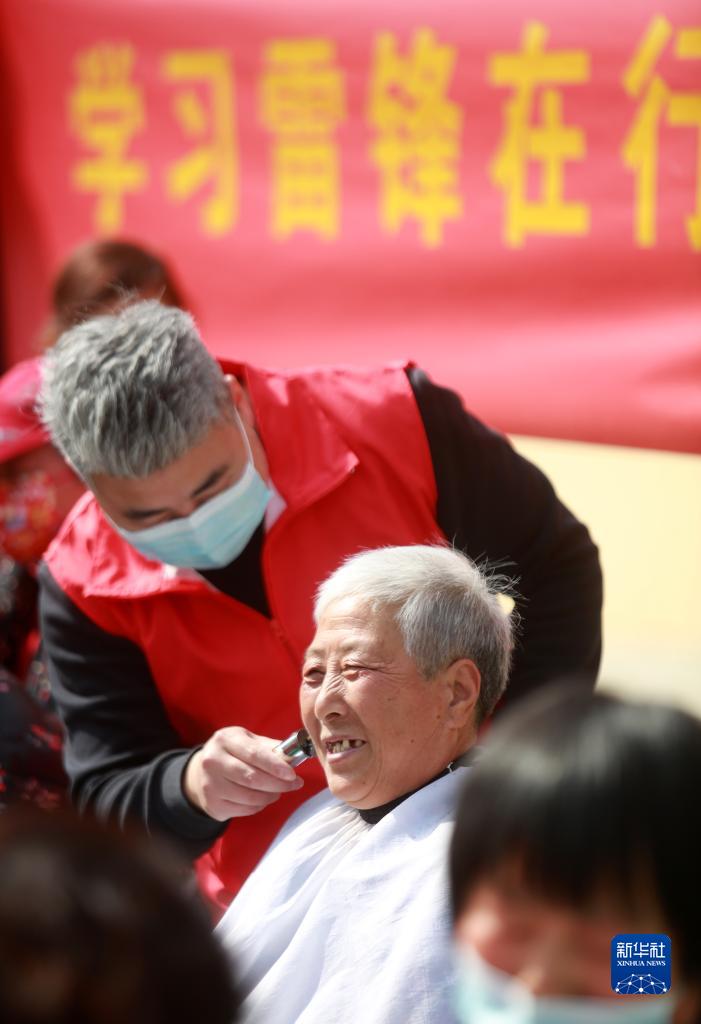 3月3日,在江蘇省揚州市邗江區竹西街道安平社區,志愿者為老人免費理發(fā)。