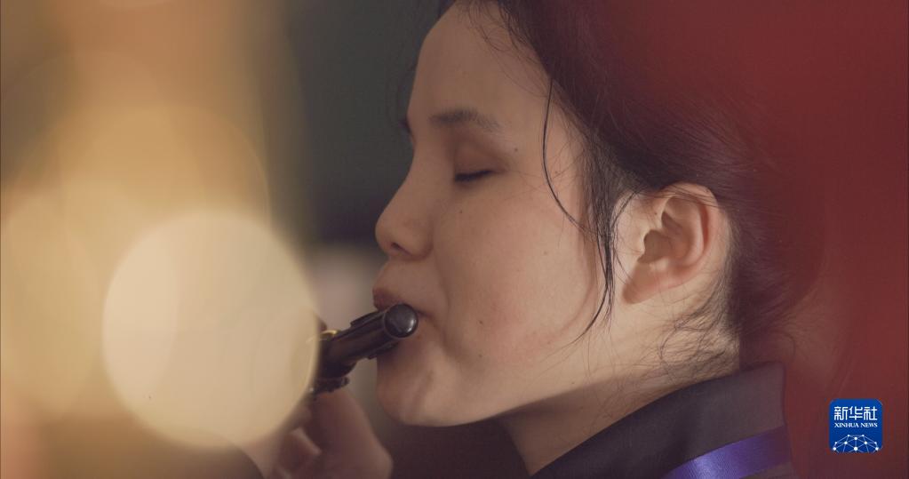 圖為重慶市特殊教育中心揚帆管樂(lè )團長(cháng)笛手田秀云在北京的排練場(chǎng)館內進(jìn)行排練(2月16日攝)。