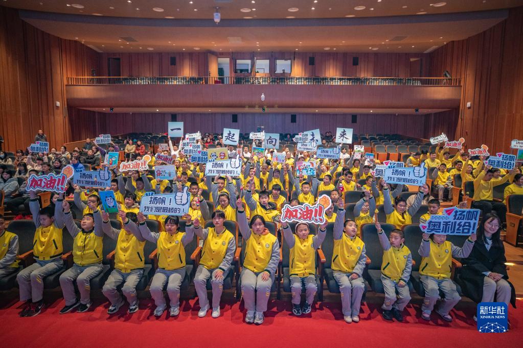圖為在重慶市特殊教育中心,孩子們在揚帆音樂(lè )廳集中收看北京冬殘奧會(huì )開(kāi)幕式時(shí),為即將登場(chǎng)演奏的揚帆管樂(lè )團參演團隊加油(3月4日攝)。