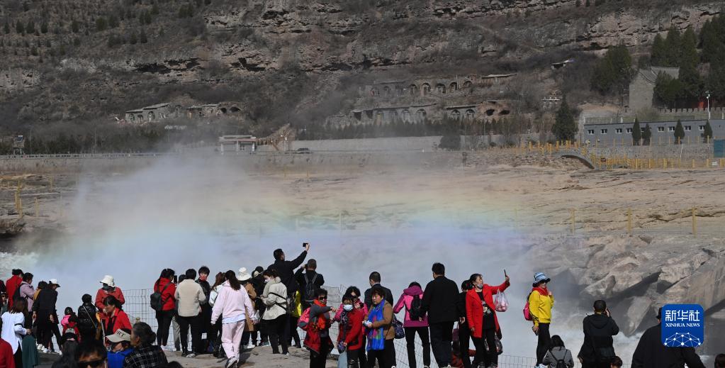 隨著(zhù)氣溫不斷回升,黃河壺口瀑布水流量明顯增大,在陽(yáng)光的照射下,飛瀑與彩虹相映成趣,把一幅動(dòng)靜結合的春天畫(huà)卷展現在游客眼前。