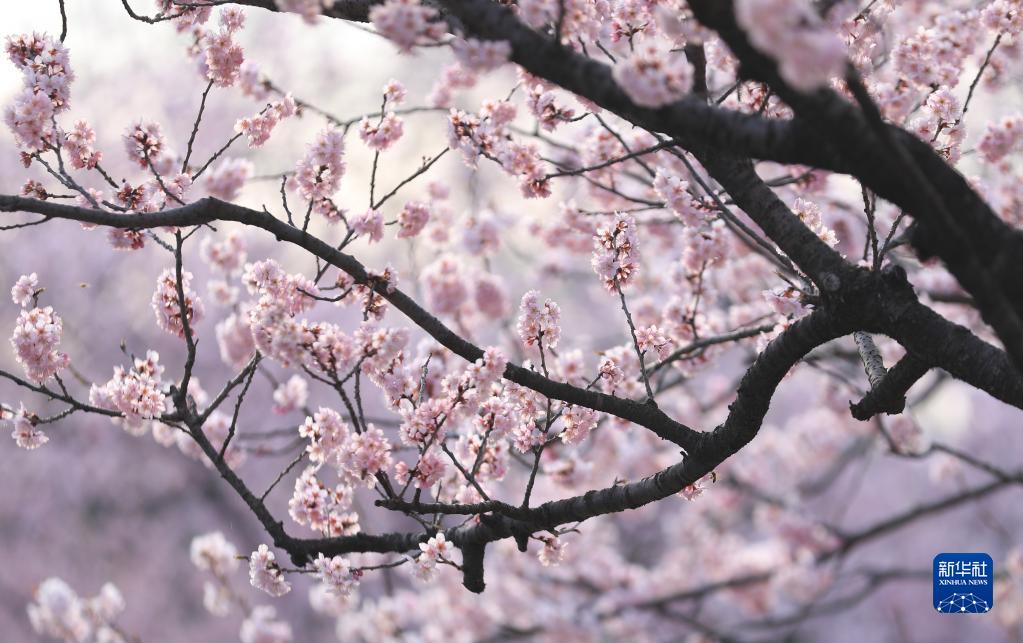 3月10日,江蘇省揚州市鑒真路櫻花大道的早櫻盛開(kāi)。