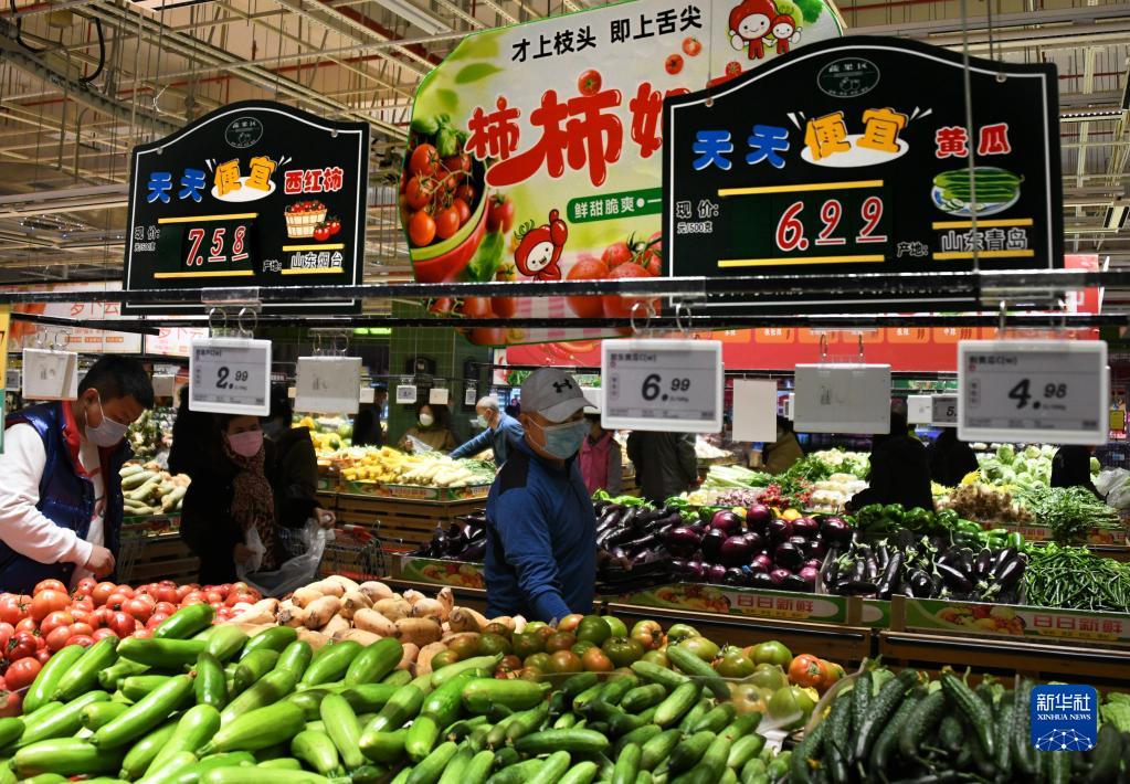 3月14日,市民在青島市市南區一商超選購蔬菜。