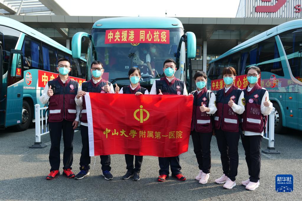3月14日,中山大學(xué)附屬第一醫院的內地援港醫療隊隊員合影。