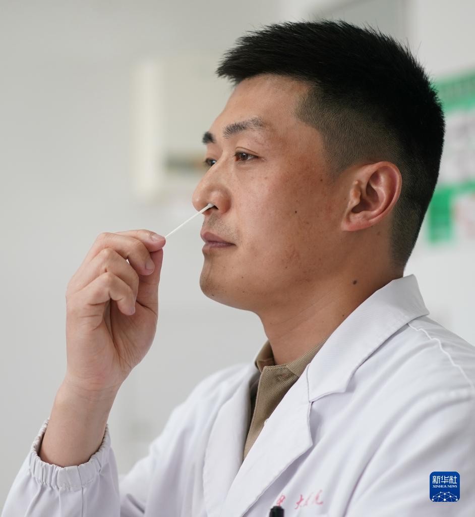 3月15日,在東南大學(xué)附屬中大醫院,張臣進(jìn)行鼻拭子采樣。