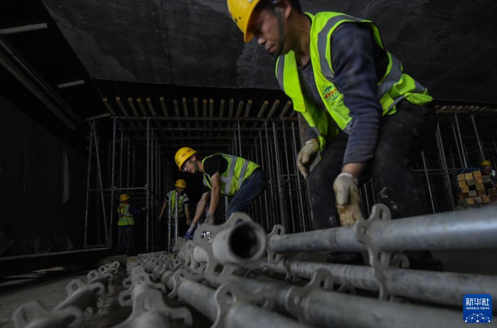 3月16日,工人在武漢市武昌濱江核心區地下空間環(huán)路工程工地施工。