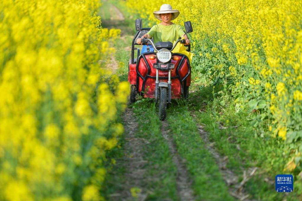 在常德市石門(mén)縣葉家坪村,葉金娥騎著(zhù)三輪車(chē)裝著(zhù)工具準備去勞作(3月15日攝)。