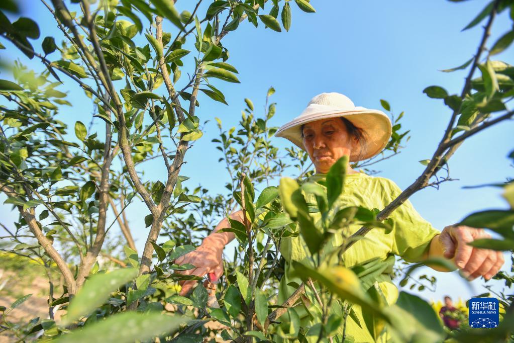 在常德市石門(mén)縣葉家坪村,葉金娥在修剪柑橘樹(shù)的枝葉(3月15日攝)。