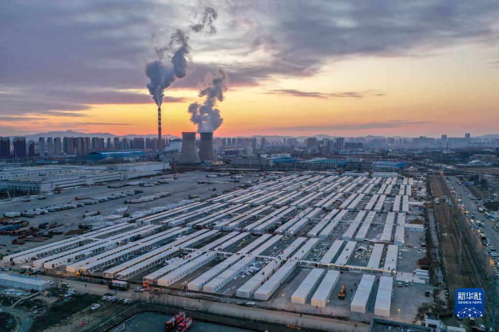 這是3月20日傍晚拍攝的吉林市高新南區隔離方艙建設現場(chǎng)(無(wú)人機照片)。