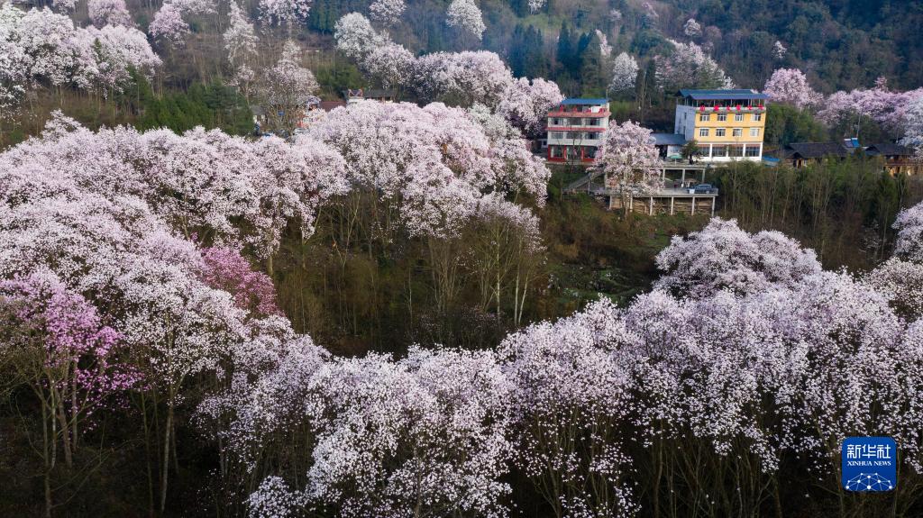 目前正是四川省江油市大康鎮戴天山村的辛夷花盛開(kāi)的季節。這里的辛夷花在群山環(huán)抱中綿延數十里,呈現出一派世外桃源的景象,吸引游人前來(lái)踏青賞花。當地的農家樂(lè )旅游接待、土特產(chǎn)銷(xiāo)售等“花經(jīng)濟”,促進(jìn)了村民們增產(chǎn)增收。