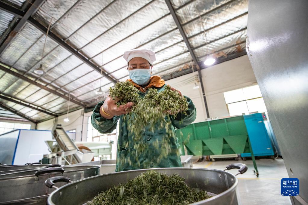 3月23日,在重慶市秀山土家族苗族自治縣洪安鎮一家茶葉加工企業(yè)內,村民手工翻炒春茶。