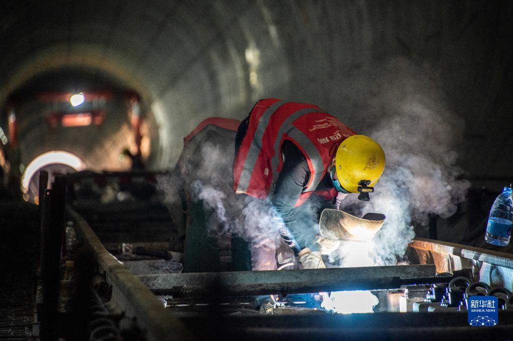 4月1日,工人在武漢地鐵前川線(xiàn)工程現場(chǎng)進(jìn)行電焊作業(yè)。