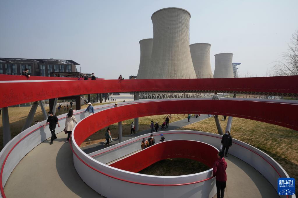 4月4日,游客在北京冬奧公園參觀(guān)游覽。