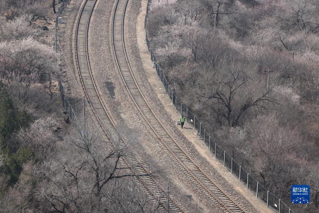 北京市郊鐵路S2線(xiàn)的列車(chē)穿梭于居庸關(guān)長(cháng)城腳下的花海,是春日里的一道風(fēng)景。北京鐵路公安處安排轄區民警加強值守,確?;êA熊?chē)和游客的安全。