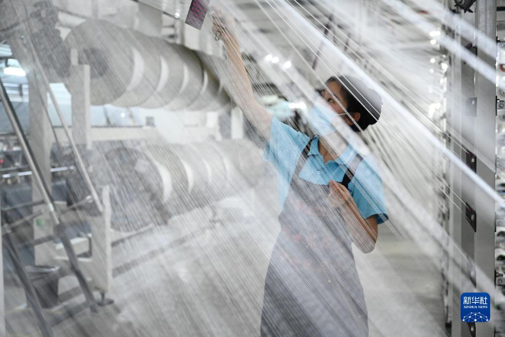 4月12日,在福建泉州石獅市的一家紡織企業(yè),工人在工廠(chǎng)里忙碌。