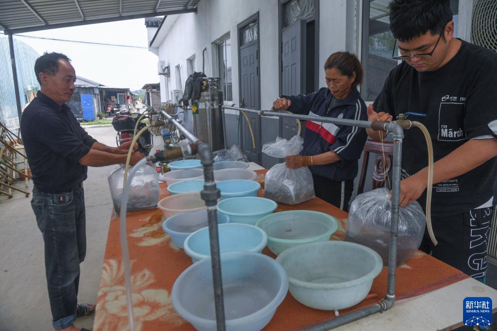 4月27日,在湖州市吳興區東林鎮保健村湖旺水產(chǎn)基地,工作人員打包魚(yú)苗準備發(fā)售給各養殖戶(hù),一袋魚(yú)苗大約有五萬(wàn)尾。