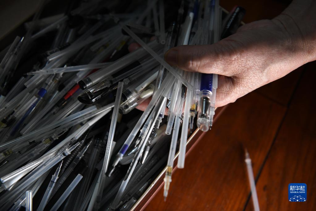 這是張愛(ài)蘭書(shū)寫(xiě)小說(shuō)手稿《繾綣曲》用過(guò)的筆和筆芯(5月17日攝)。