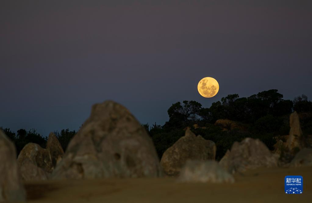 這是6月14日在位于澳大利亞西澳大利亞州的尖峰石陣拍攝的“超級月亮”。