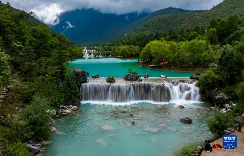 6月26日,游客在位于玉龍雪山腳下的藍月谷游覽。