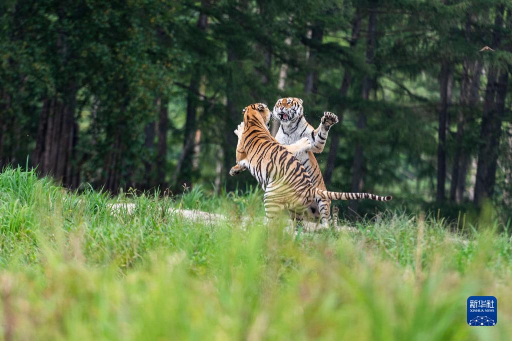 7月29日在橫道河子東北虎林園野化訓練區拍攝的東北虎。