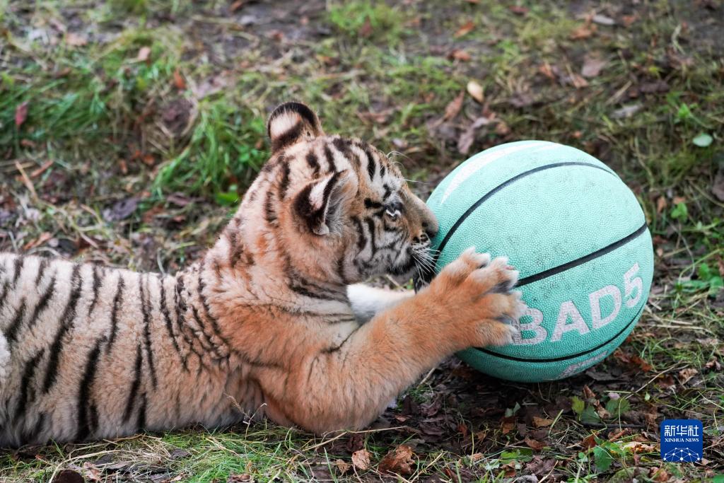 7月29日,東北虎幼虎在中國橫道河子貓科動(dòng)物飼養繁育中心活動(dòng)區玩耍。