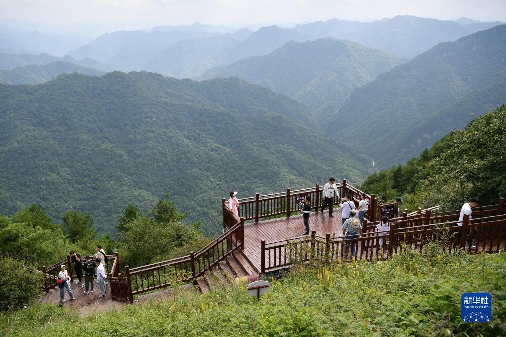 7月30日,游客在留壩縣紫柏山國家森林公園內游覽。