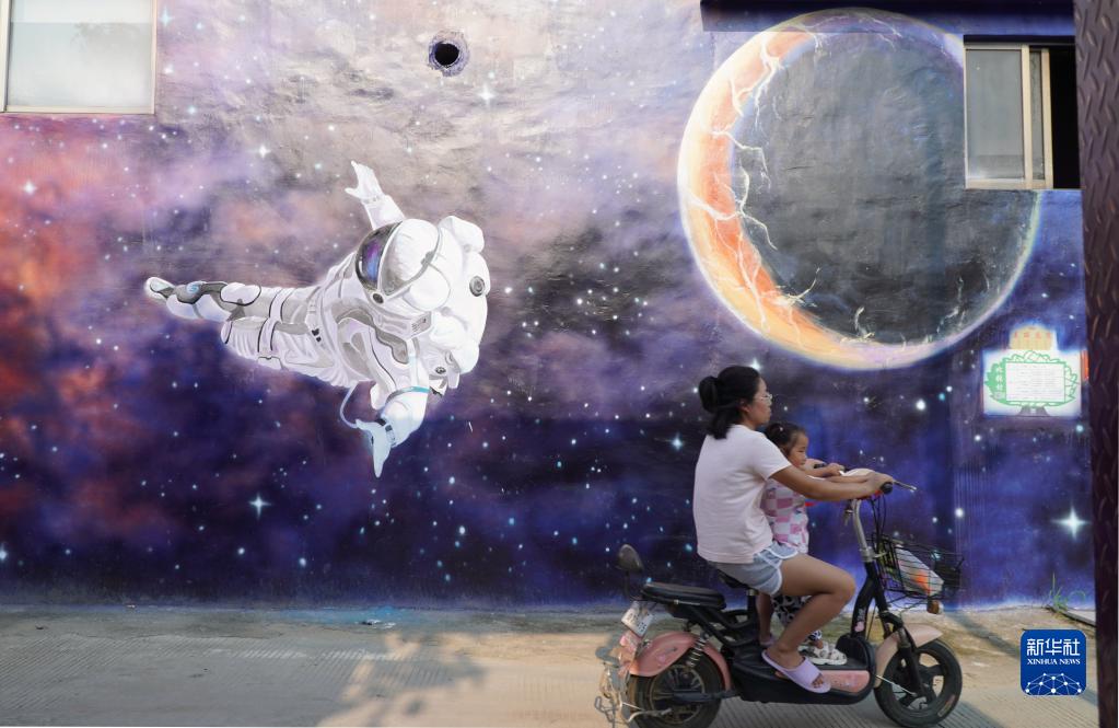 8月3日,北張村村民從墻繪藝術(shù)畫(huà)前經(jīng)過(guò)。