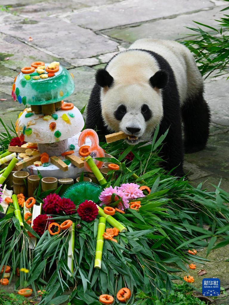 8月3日,在中國大熊貓保護研究中心雅安基地,大熊貓“雅雅”在享用美食。
