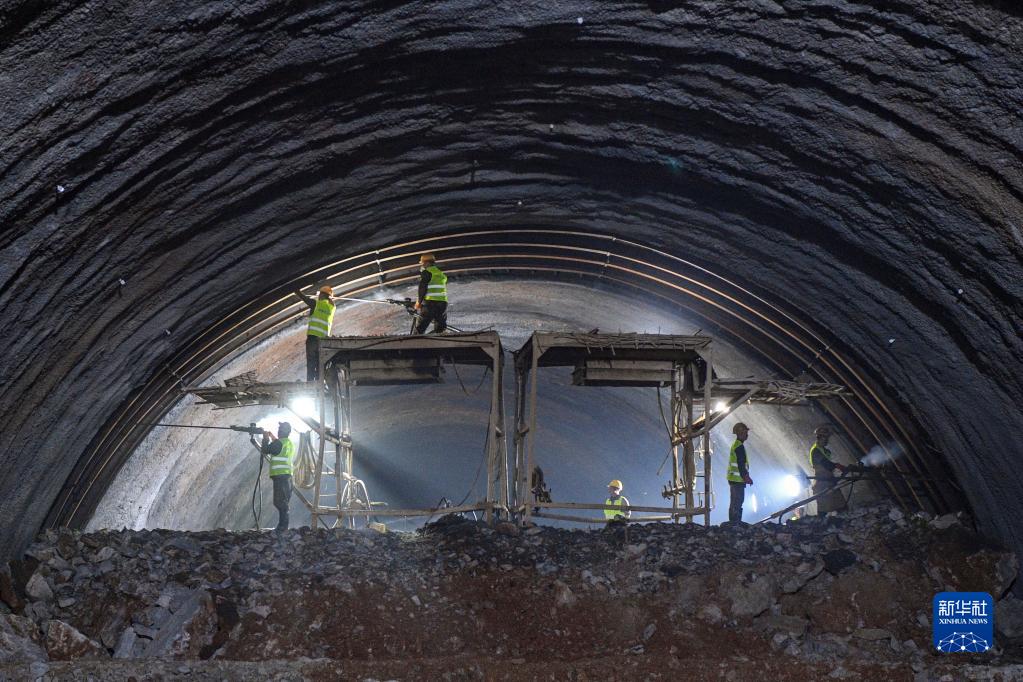 8月4日,在位于廣西環(huán)江毛南族自治縣的貴南高鐵大方山隧道內,工人對爆破后的隧道巖壁進(jìn)行除險加固作業(yè)。