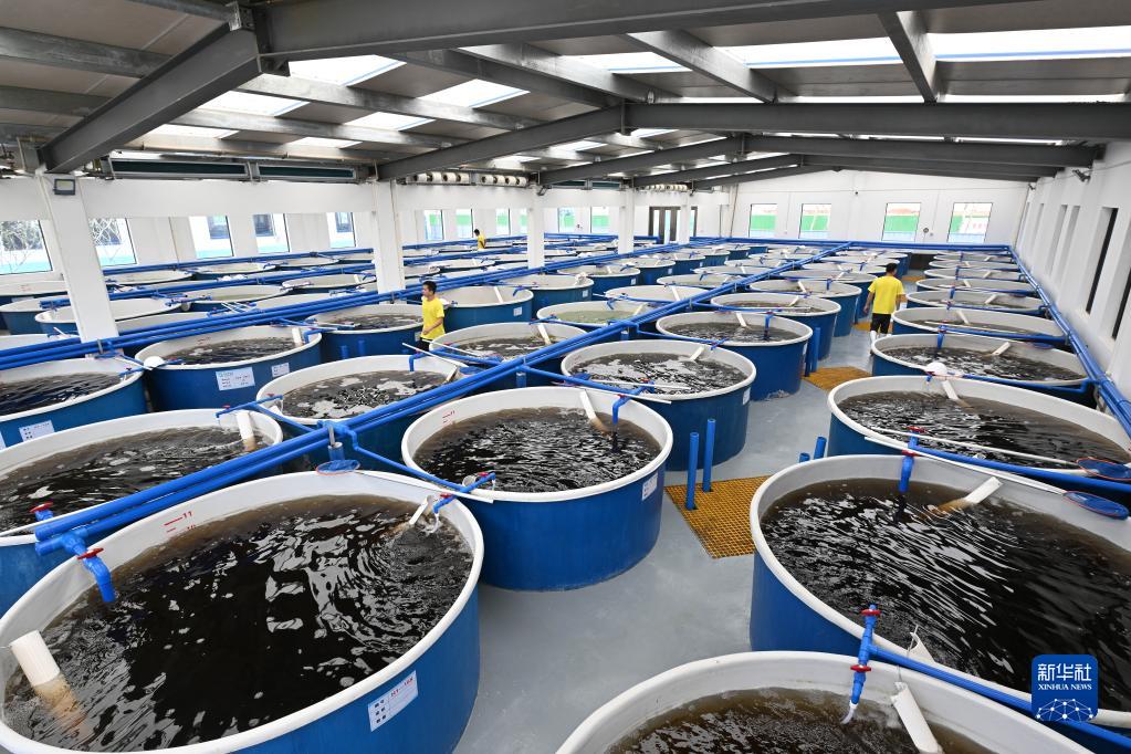 這是進(jìn)駐文昌市馮家灣現代化漁業(yè)產(chǎn)業(yè)園的渤海水產(chǎn)蝦苗養殖車(chē)間(2022年5月31日攝)。