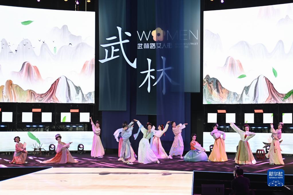 當日,2022杭州仲夏夜——拱墅區“武林衣秀·宋韻杭州”暨武林路女人街開(kāi)街儀式在武林廣場(chǎng)上演?;顒?dòng)除了走秀,還融入了宋韻元素,呈現宋代風(fēng)韻。
