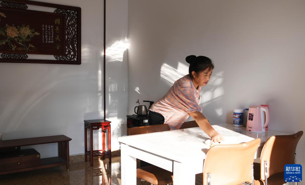 8月4日,河南省南陽(yáng)市淅川縣九重鎮鄒莊村村民在自家民宿內打掃。
