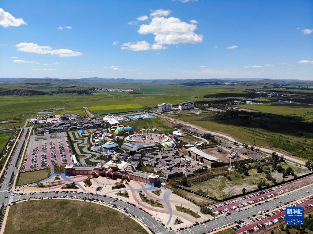 這是8月5日拍攝的豐寧滿(mǎn)族自治縣中國馬鎮旅游度假區景色(無(wú)人機照片)。