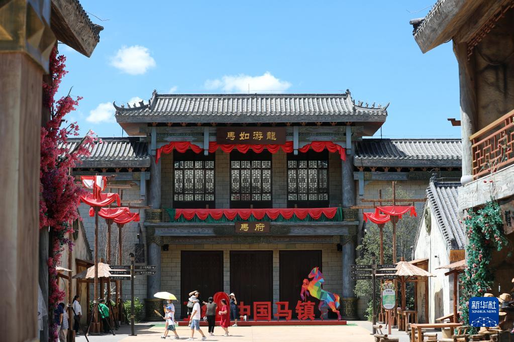 8月5日,游客在豐寧滿(mǎn)族自治縣中國馬鎮旅游度假區休閑游玩。