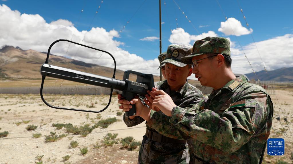 西部戰區聯(lián)合參謀部某局處長(cháng)王道彬(右一)組織便攜式監測設備狀態(tài)檢測(2022年7月14日攝)。