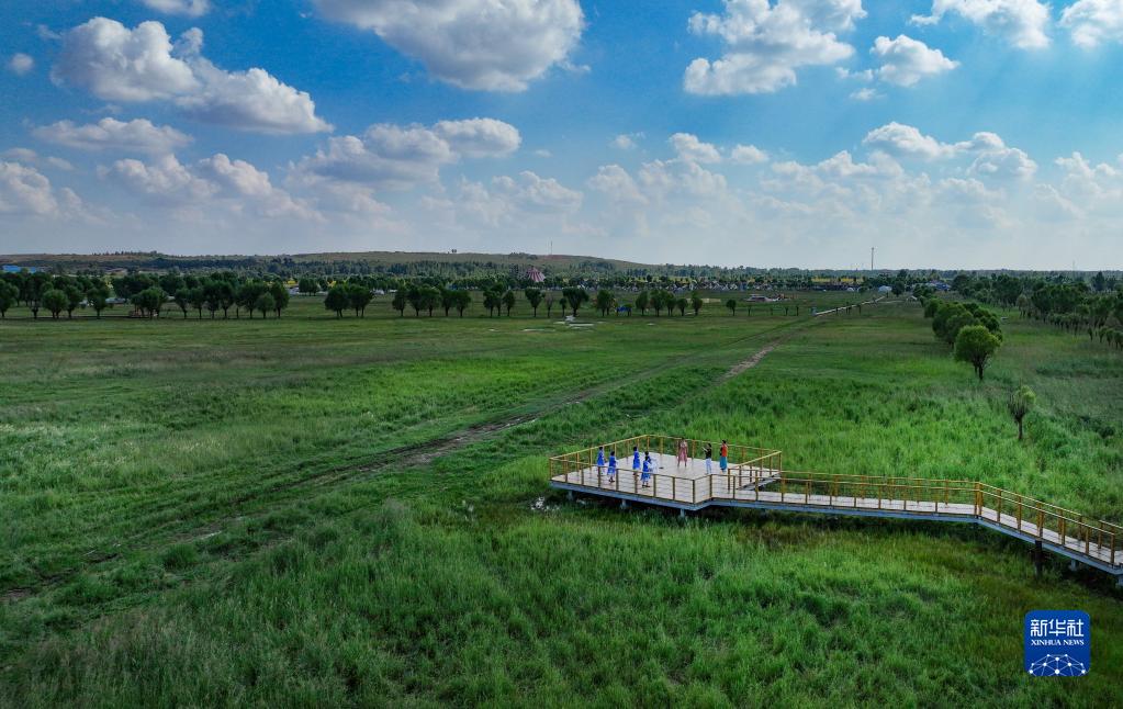 8月5日,游人在爾林兔大草原游玩(無(wú)人機照片)。