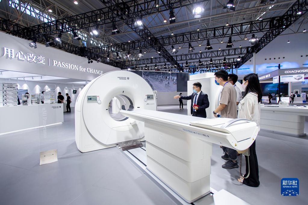 8月5日,在2022年世界大健康博覽會(huì )上,觀(guān)眾在展廳了解PET-CT系統。