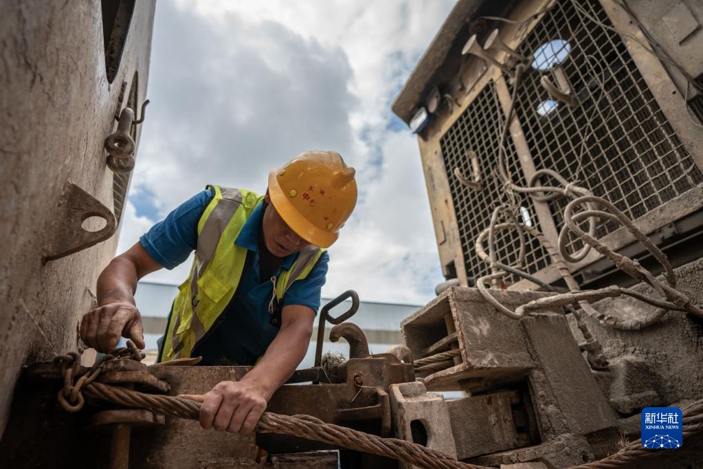 8月4日,高黎貢山隧道施工人員在施工現場(chǎng)檢查軌道車(chē)連接處。
