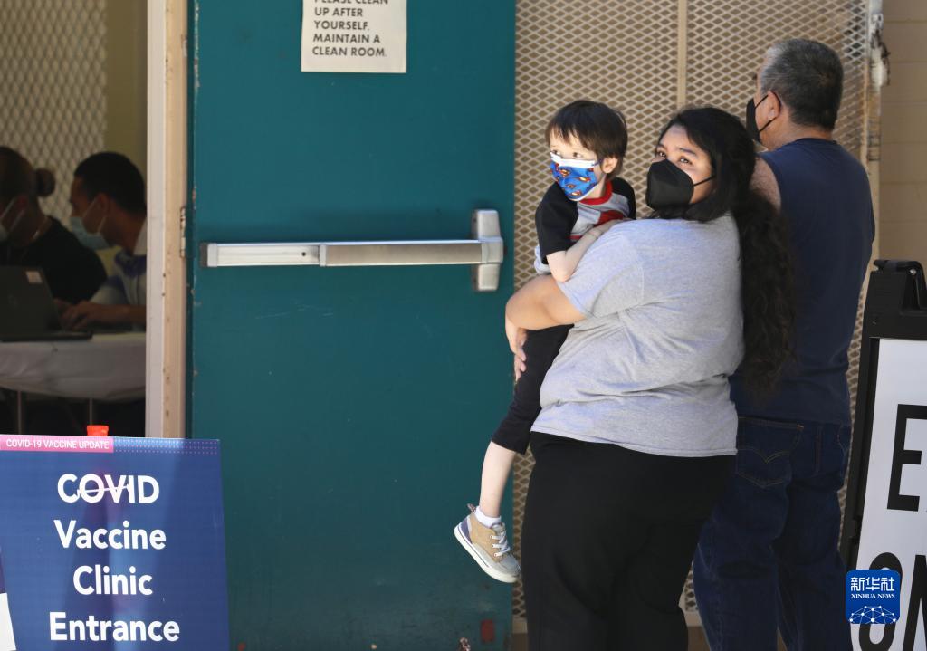 8月5日,在美國加利福尼亞州洛杉磯縣,戴著(zhù)口罩的當地居民等待接種新冠疫苗。