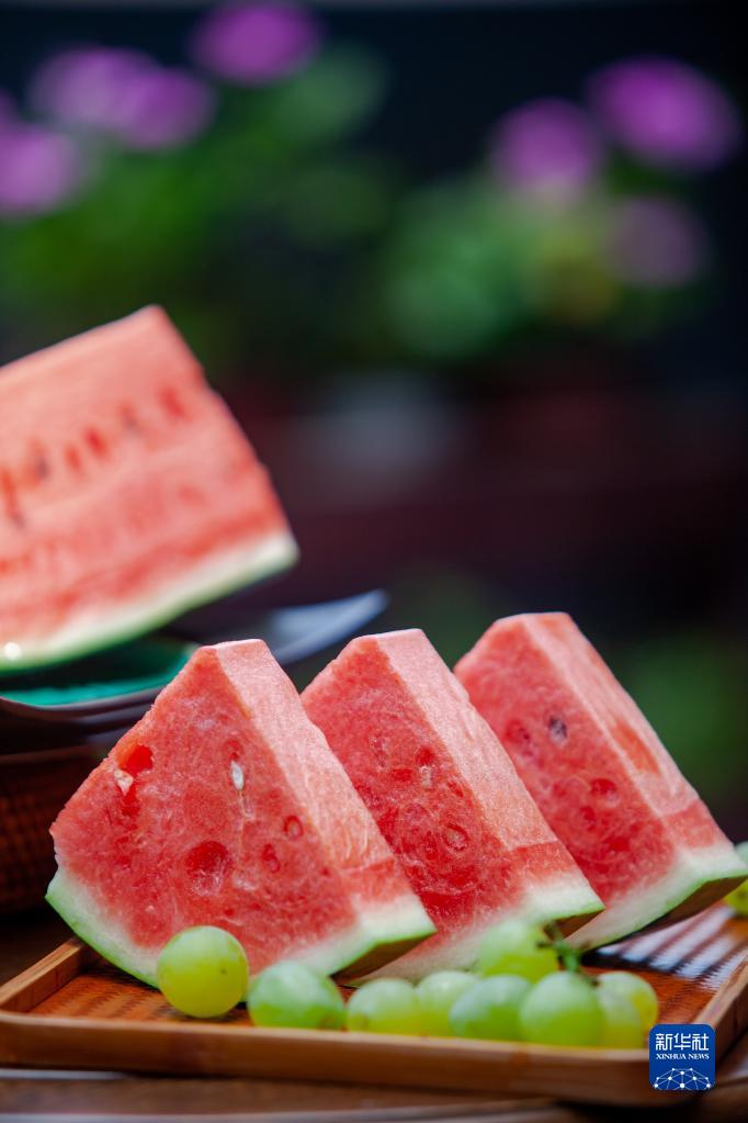 8月1日,在山東省淄博市高青縣,切好的西瓜擺在桌上。立秋當天民間有吃西瓜的習俗,稱(chēng)為“咬秋”。